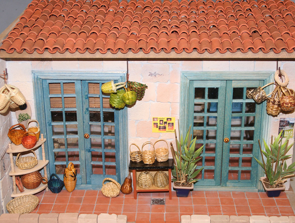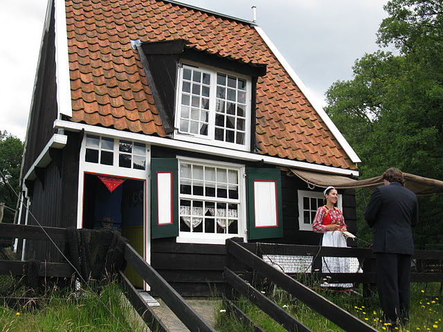 Links: Origineel vissershuisje in het Nederlands Openluchtmuseum (NOM) te Arnhem. Rechts: 1:12 vissershuisje van Wilma Elsenaar. Dak: Gebruikt DD 108 http://wilmas-miniaturen.blogspot.nl/ | ||||